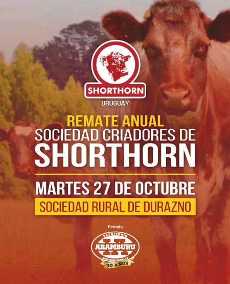 El próximo Miércoles 15 de Octubre a las 15 hs. se realizará el Remate de la Sociedad de Criadores de Shorthorn, en la Sociedad Rural de Durazno.